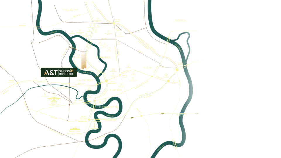 Tọa lạc tại vị trí đắc địa ngay cửa ngõ phía Bắc TP.HCM, A&T Saigon Riverside là dự án căn hộ cao cấp do A&T Group đầu tư, hứa hẹn mang đến không gian sống hiện đại, tiện nghi và gần gũi thiên nhiên cho cư dân. Chủ đầu tư A&T Group đã chứng minh được tốc độ hạ tầng nhanh chóng qua dự án A&T sky garden