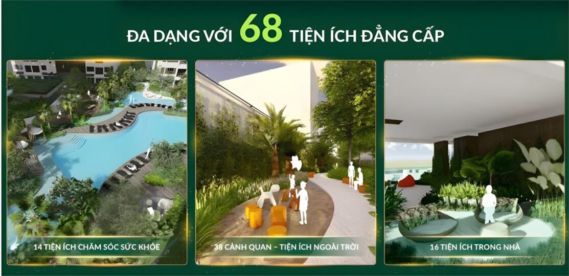 Tiện ích: Hệ thống 68+ tiện ích đẳng cấp như hồ bơi, công viên, khu thể thao, trung tâm thương mại, nhà trẻ và khu sinh hoạt cộng đồng,..