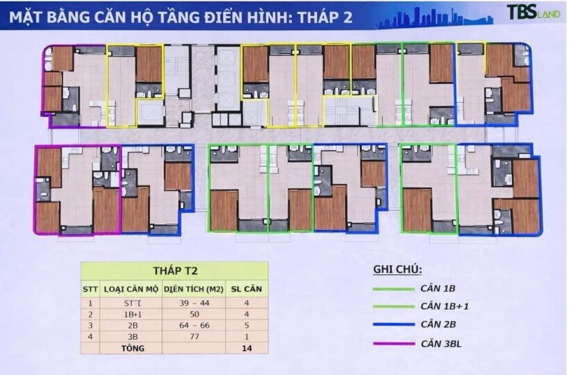 - 2PN (58–75 m²): Bố trí hợp lý, tối ưu công năng, phù hợp gia đình nhỏ.