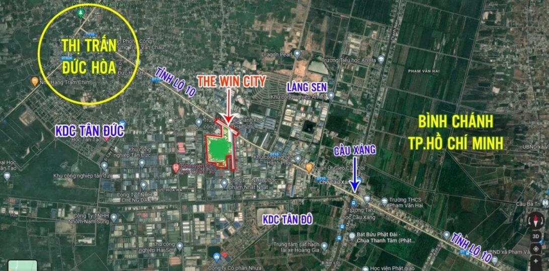 Vị trí siêu đẹp: The Win City tọa lạc đắc địa ngay mặt tiền Đường Tỉnh Lộ 10, vị trí chiến lược giáp ranh trực tiếp với Bình Chánh, TP.HCM. Điều này mang lại lợi thế vượt trội về khả năng kết nối nhanh chóng vào trung tâm Sài Gòn và các khu vực lân cận, đồng thời đón đầu sự phát triển hạ tầng phía Tây Bắc thành phố.