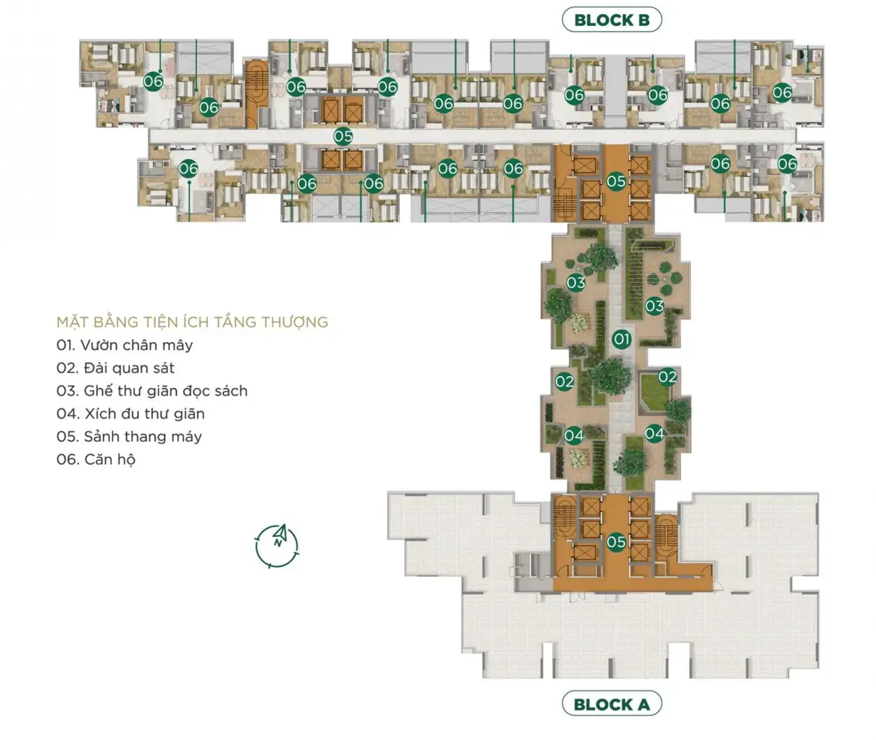 Quy Mô: 2 Block cao 40 tầng gồm 2 tầng hầm và 5 tầng thương mại, 35 tầng căn hộ.