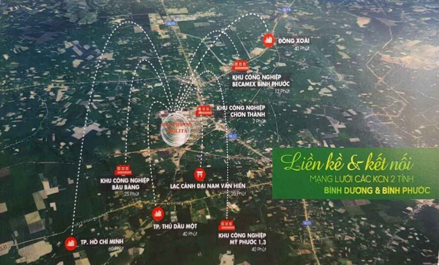 Dự án Đại Phước Molita gần quốc lộ 13 nên rất thuận lợi khi lưu thông ra các TP như: Hồ Chí Minh, Dĩ An, Biên Hòa Đồng Nai, Đồng Xoài, Bến Cát,… Và rất các khu công nghiệp lớn như: khu công nghiệp Bàu Bàng, khu công nghiệp Chơn Thành, khu công nghiệp Becamex Bình Dương,….