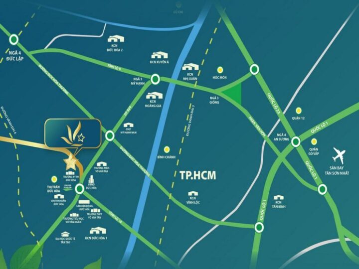 Dự án Khu đô thị Sao Vàng liền kề các cụm KCN, Hạ tầng giao thông kết nối và nằm ngay trung tâm TT Đức Hòa.