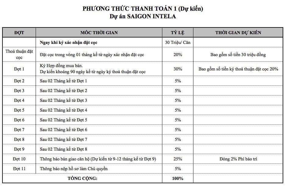 PHƯƠNG THỨC THANH TOÁN CĂN HỘ SAIGON INTELA